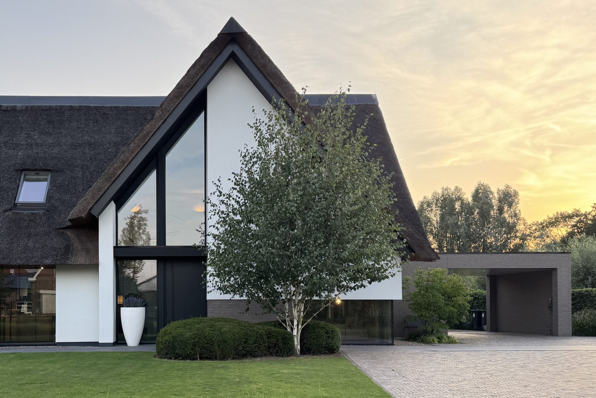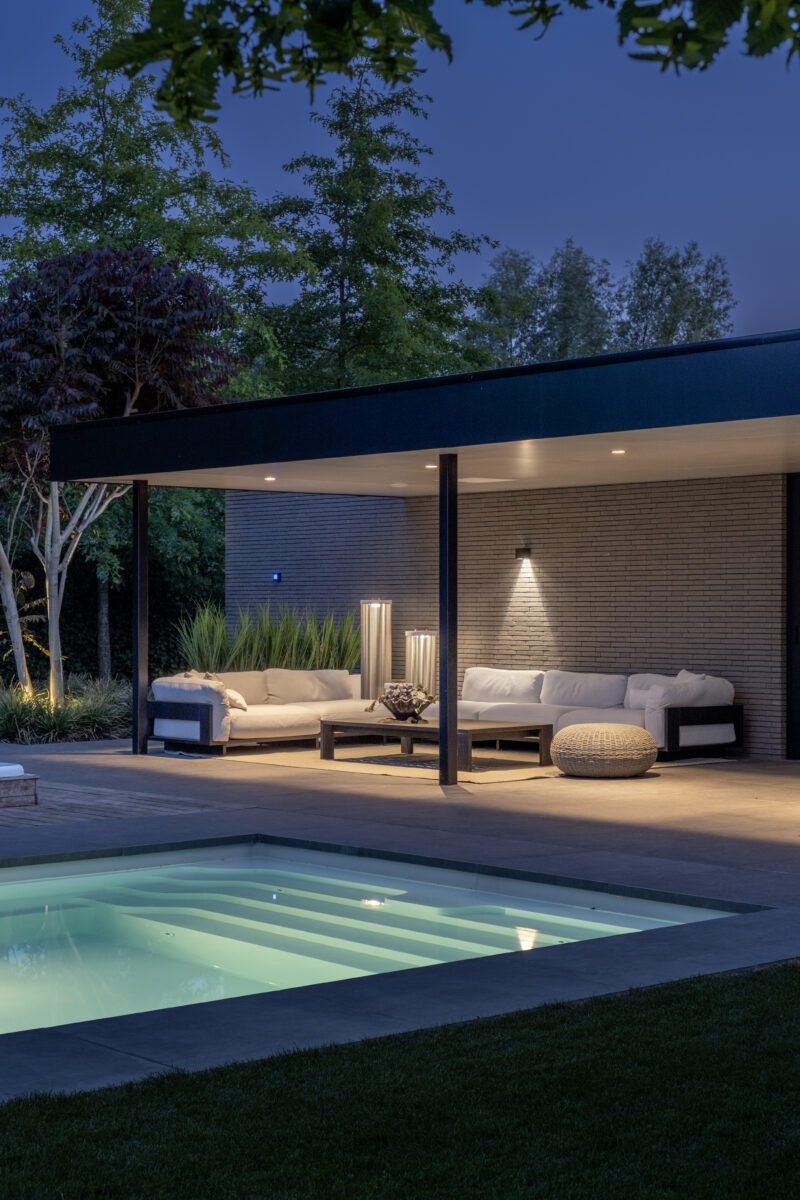 Deze villa combineert een warme, comfortabele familiewoning met indrukwekkende architectonische details zoals een hoge entree, zichtlijnen tussen leefruimtes en doordacht geplaatste ramen voor uitzicht én privacy. De tuin met zwembad, poolhouse en vier terrassen vormt een luxe buitenverblijf, waardoor de bewoners het vakantiegevoel gewoon thuis ervaren.